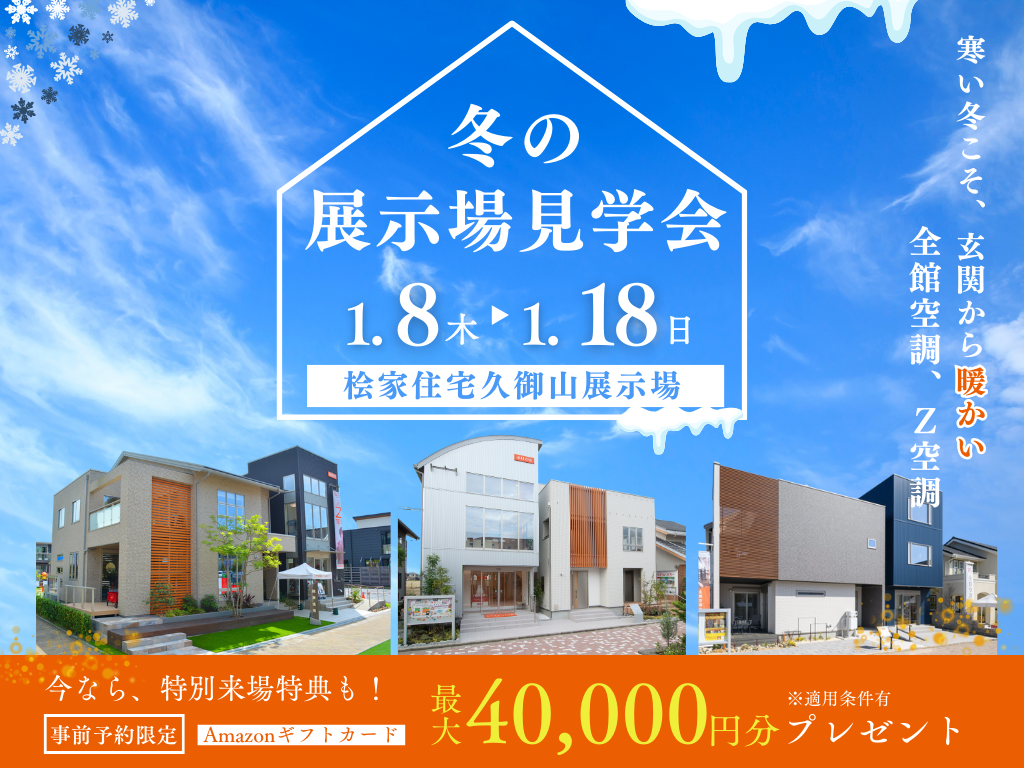 【久御山展示場】⛄冬の展示場見学会2026.01.09桧家住宅【久御山展示場】来場キャンペーン開催中!🏡 期間中のご来場で✨Amazonギフトカード40,000円分✨プレゼント!今がチャンス!!まずはお気軽にご来場ください♪🏃♀️ ※別途適用条件があります。